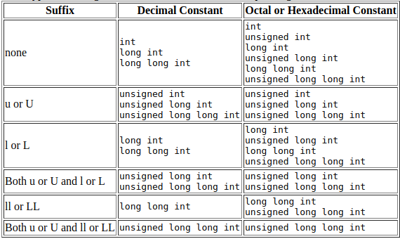 注意,与十进制整数文本不同,没有u/U后缀的十六进制和八进制文本在搜索合适的类型时,可以在升序到下一个更高的有符号整数类型之前翻转类型符号。