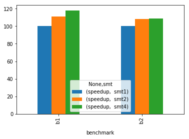 df.pivot(index='benchmark', columns='smt').plot(kind='bar')