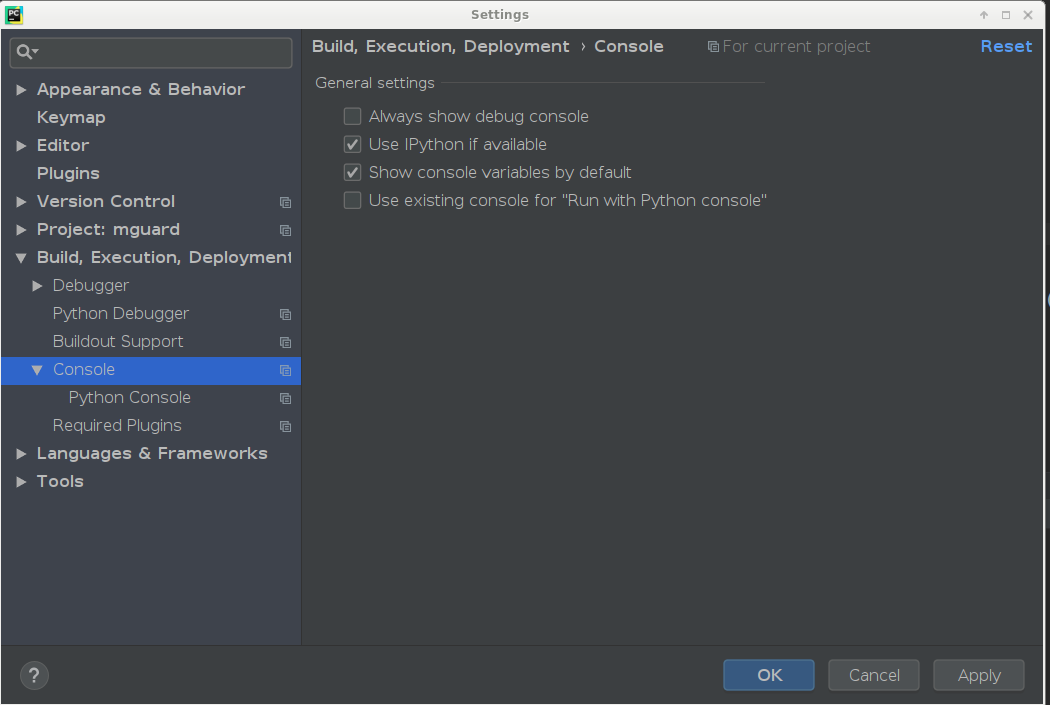 文件>设置>生成、执行、开发>控制台
