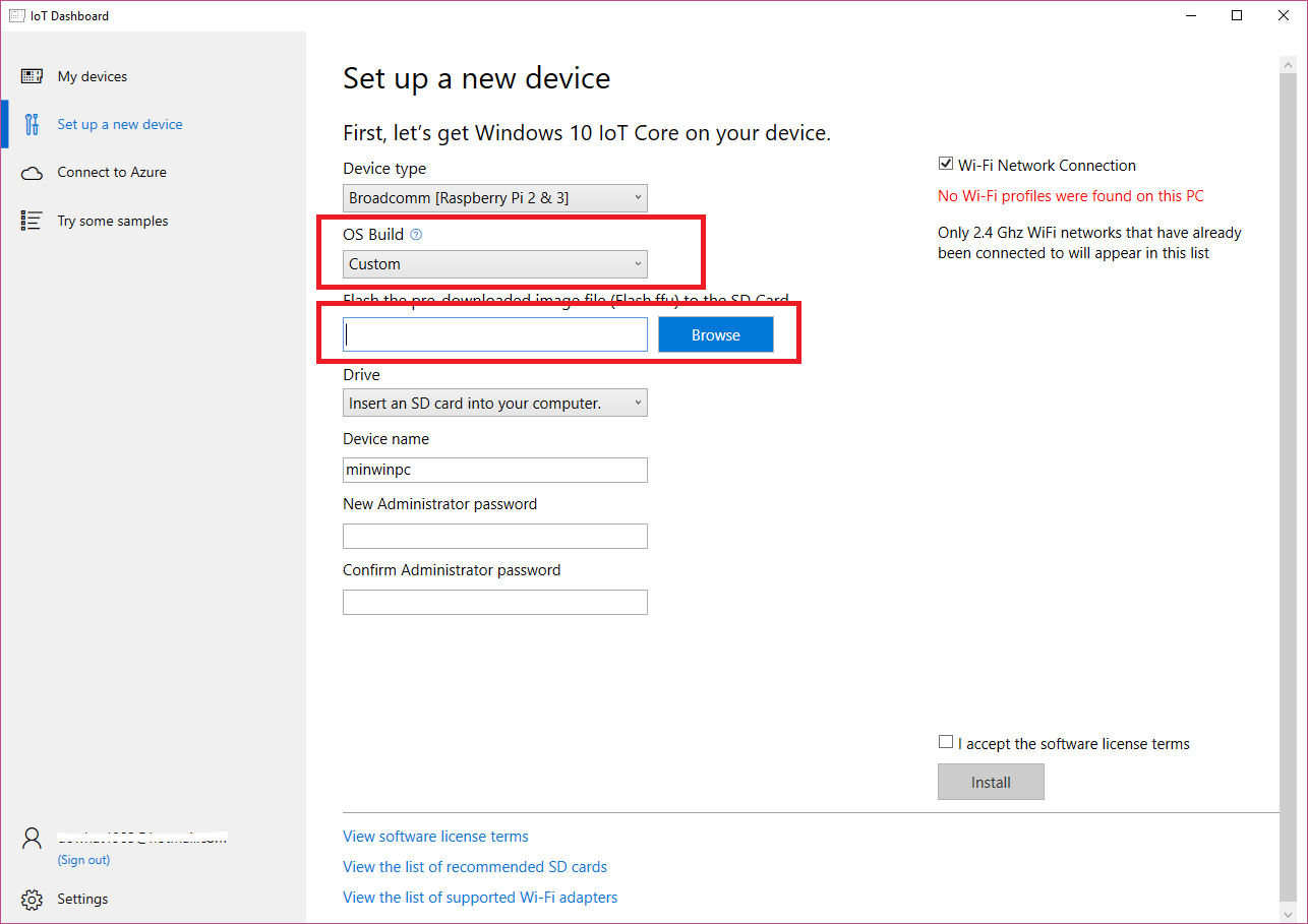 目前,Raspberry Pi 3B+是一个技术预览,没有发布版本的时间表。有限的验证和启用已经完成。您需要从这个链接(https://www.microsoft.com/en-us/software-download/windowsiot)下载图像。然后使用IoT仪表板刷新图像(*.ffu)。在IoT仪表板中,请将OS构建更改为自定义,然后浏览ffu文件以进行刷新。
