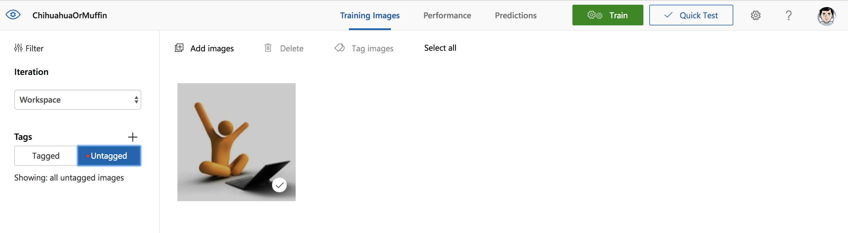 我正在开发一个简单的nodejs控制台实用工具,它将上传图像,用于自定义视觉模型的培训。我这么做主要是因为定制视觉网络应用程序不会让你同时标记多个图像。