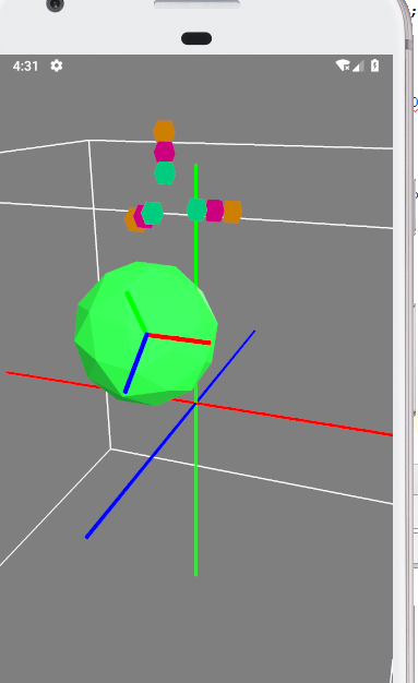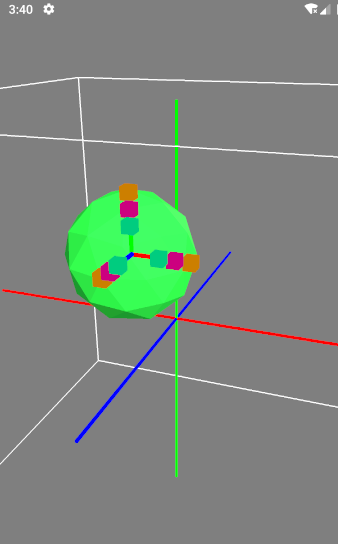 我有一个模型和一些助手立方体,它们位于它的轴上,每个轴上有三个用于转换,我用它们来围绕它的局部轴旋转模型。