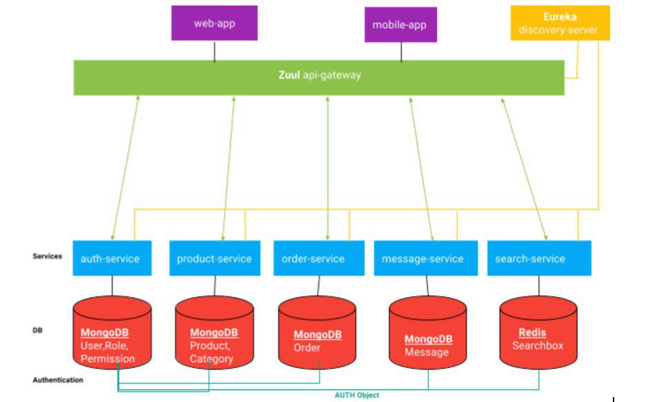 为了解决这个问题,每个服务都在一个发现服务器上注册自己(在本例中是Eureka)。然后,API -网关必须使用该发现服务,并为每个服务创建API地址。例如,它可以将模式:/{micro_service_name}/**中的任何请求转发给相关的注册服务。这意味着如果order-service有/orders/get/{order-id} API,那么客户端必须使用/order-service/orders/get/{order-id}来访问订单。API-网关使用发现服务器将请求重定向到匹配服务。