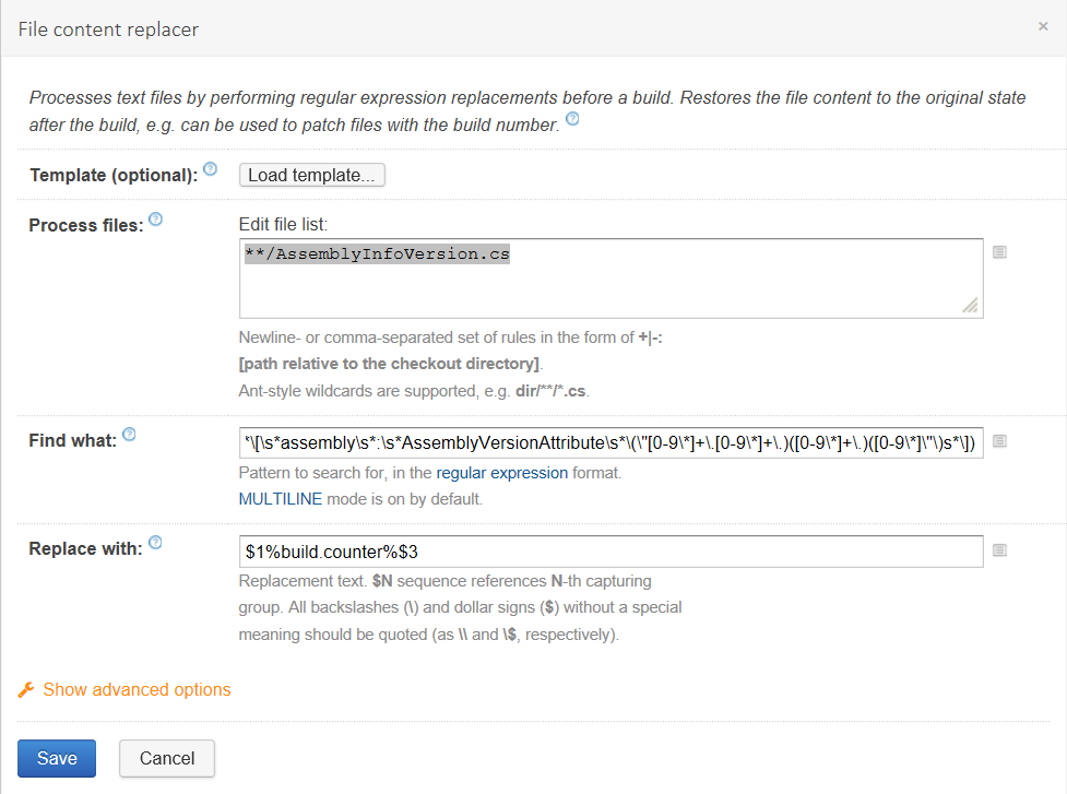in the files matched by wildcard: **/AssemblyInfoVersion.cs...