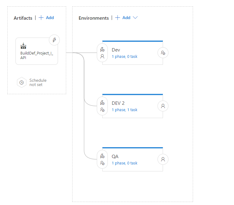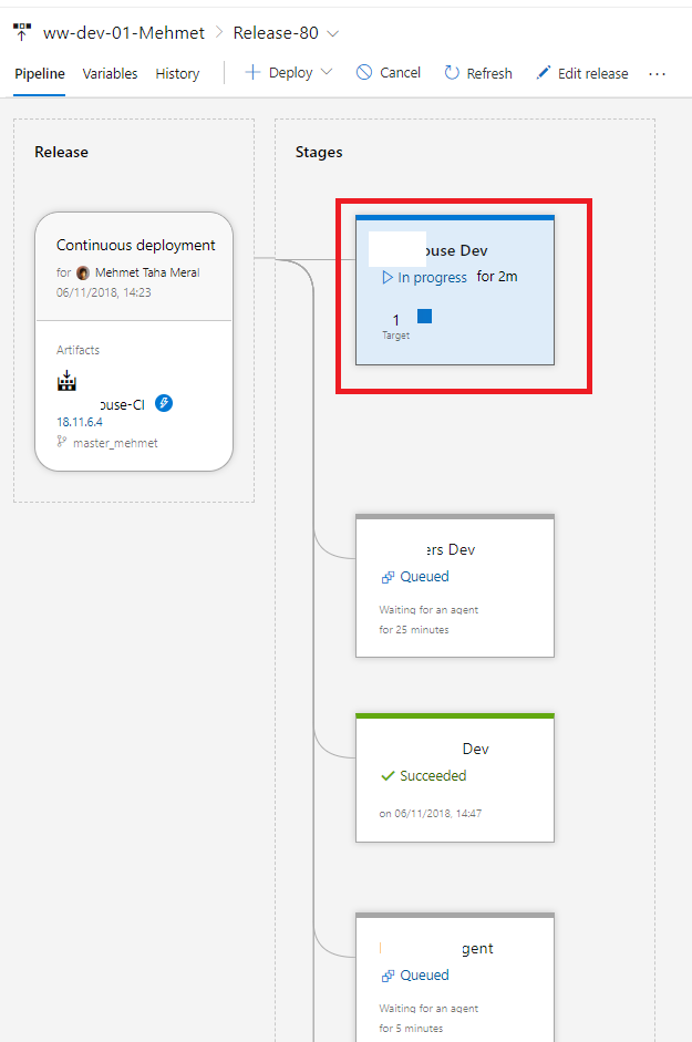 如您所见,我对每个项目都有几个部署阶段。我们通常开发的第一个,在屏幕截图上放上红色方格。