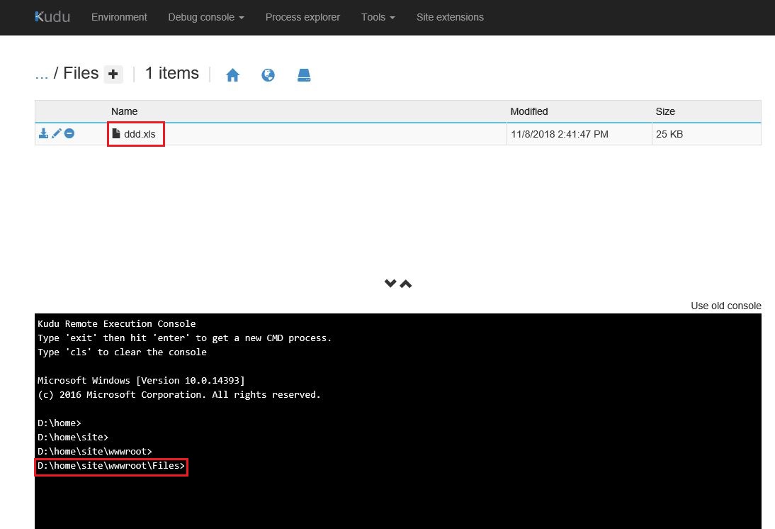 为了测试目的,我用第二种方法ExcelDataReader.Just编写了一个演示,我将excel上传到了蔚蓝的web应用程序目录中,如下所示:
