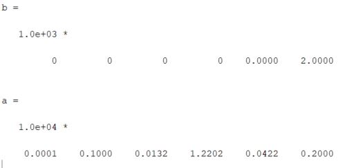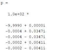 p = roots([0.005 5.00010060 0.661600001 61.01102010 2.1101 10]);