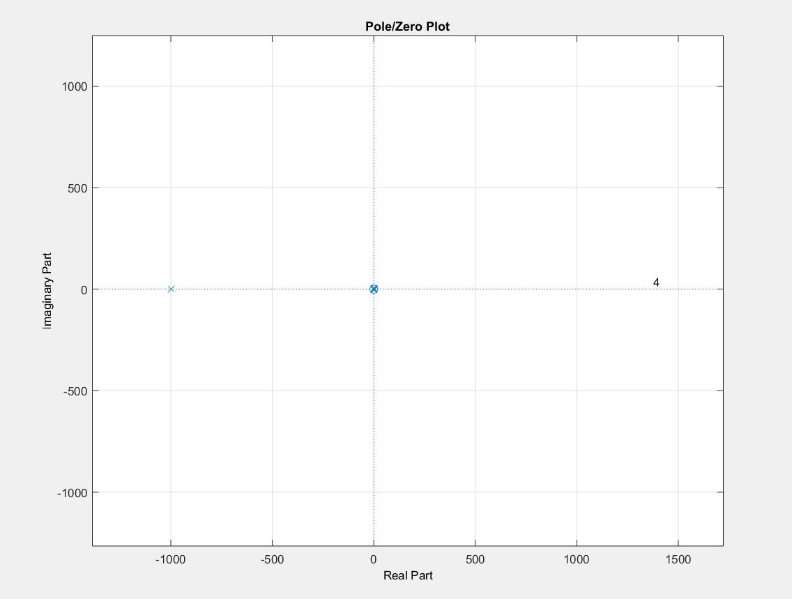 我继续寻找这个传递函数的零点和极点,看看哪一个极点可以被移除,以减少顺序。由于该模型由电气部分和机械部分组成,因此电气部分的时间常数与机械时间常数相比非常小,因此可以用增益代替电气系统,得到一个等效的四阶系统。