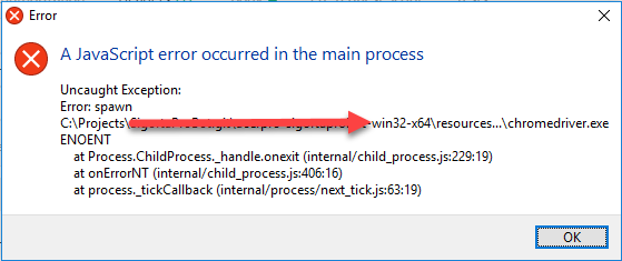 但是当使用以下命令electron-packager . --asar时,输出是一个压缩包,在本例中,chromdriver没有按预期工作,在运行我的应用程序时,我会得到以下错误