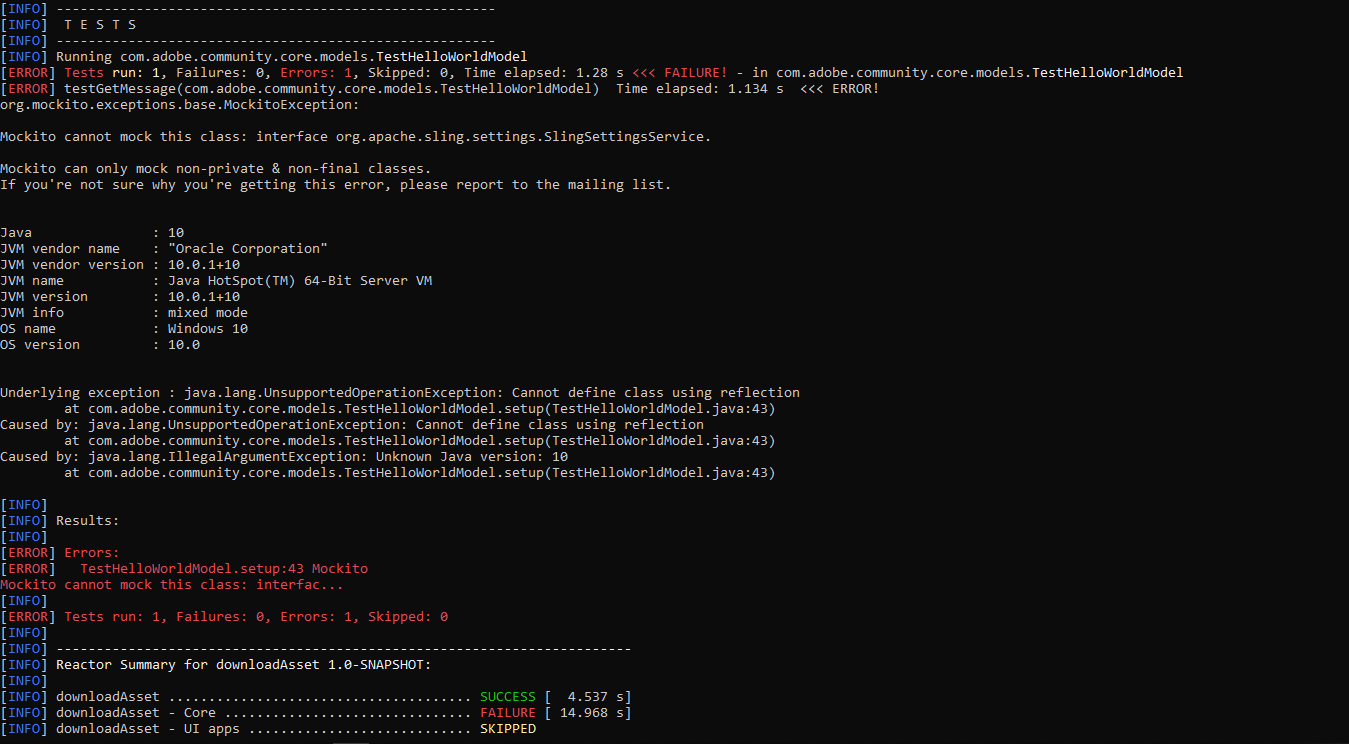 解决了!第一个解决方案:将Java10降级为Java8第二个解决方案:从POM文件编辑我的buildDirectory