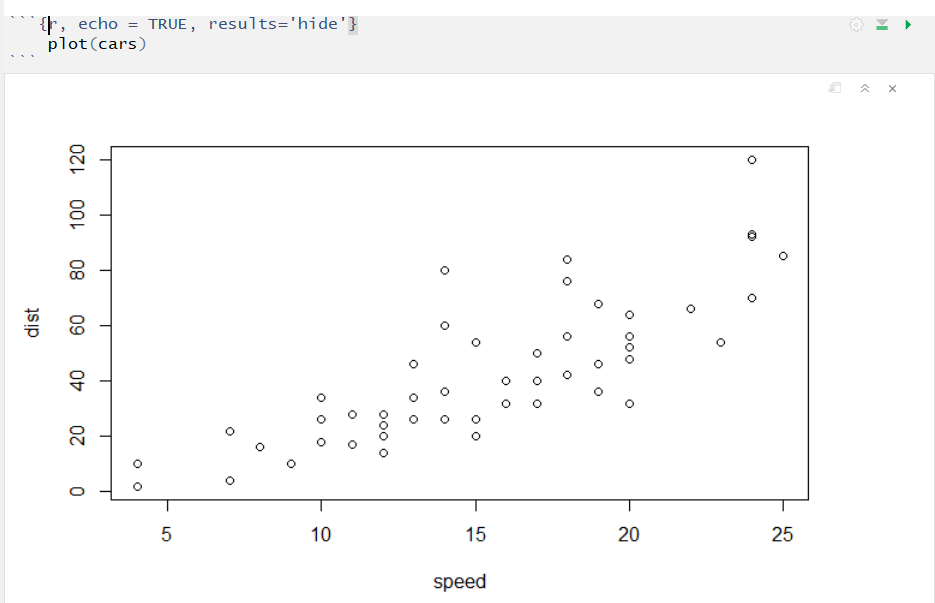 我试图生成一个块代码,它执行并显示代码,但隐藏输出。我知道这样做的方法是按照建议的echo = T, results = 'hide'在knitr块选项中添加here。但是,在我的例子中,这仍然产生了输出,有什么想法吗?