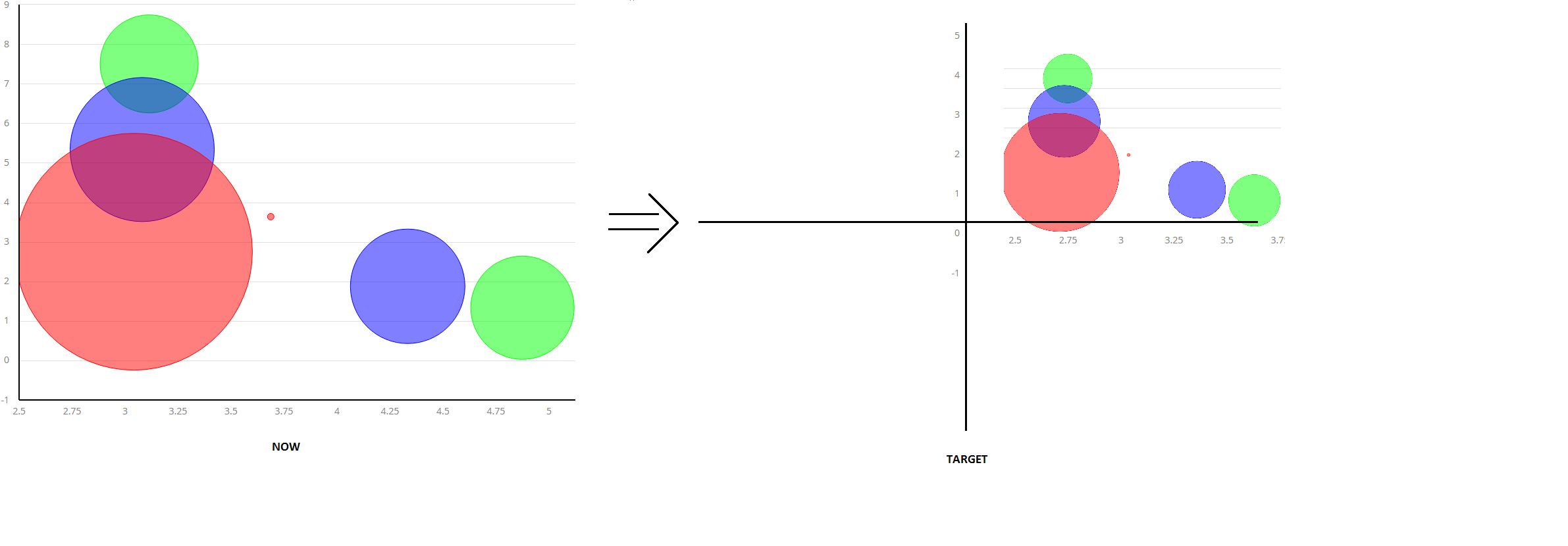 恐怕地轴总是在地块的左下方。您可以做的一件事是将min设置为负值,或者将其保持为自动,并为两个轴添加值为0的绘制线。这样你就可以看到图表的象限了。
