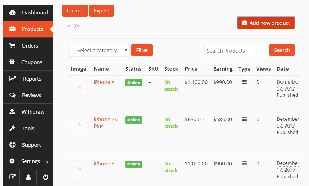 我的建议是,您可以使用顶部产品页面上可用的默认WooCommerce导入和导出。