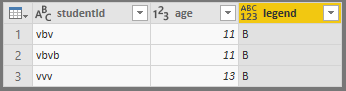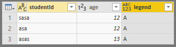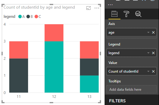 我尝试使用三个数据集的studentId列作为值,使用每个数据集的age列作为轴。这种方法一次只能运行一个数据集。我需要“转到层次结构中的下一个级别”来查看其他数据集。