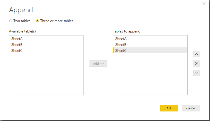 选择三个或多个表,并添加以下三个表: