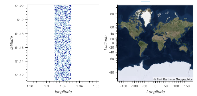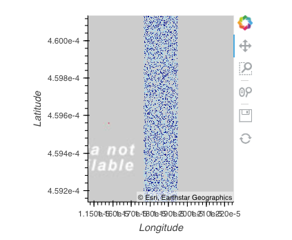 我正在尝试将geoviews.tile_sources层与datashade层结合起来。这两个层各自产生正确的轴(见图像),但当组合(使用*)时,比例会发生扭曲。