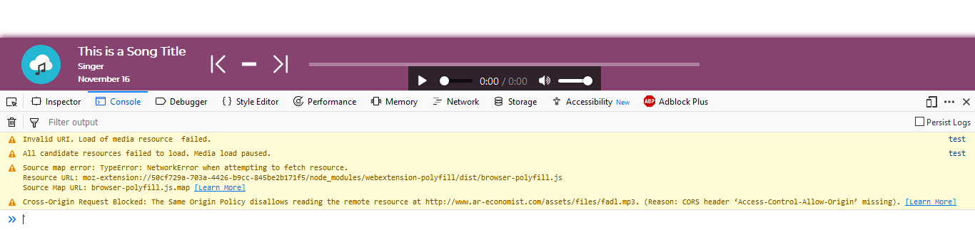 这是尝试流音频文件时的控制台响应:
