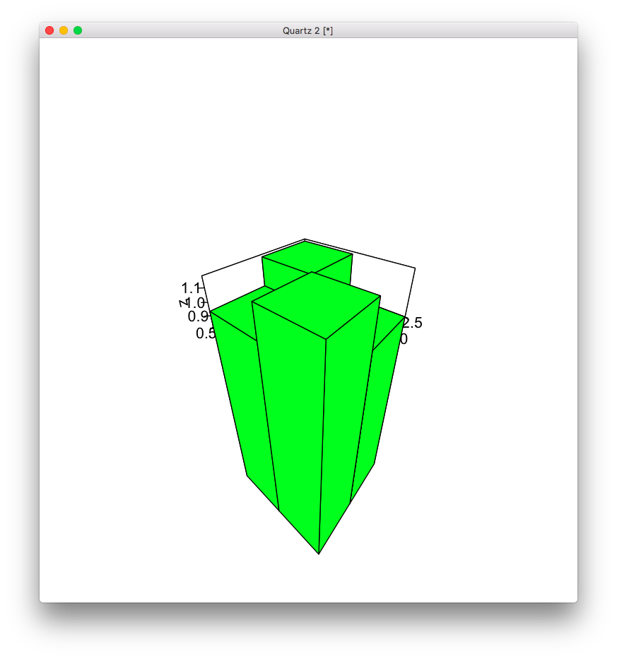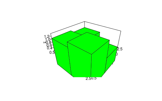 我试图使用hist3D()从plot3D包中使用以下代码绘制一个简单的直方图: