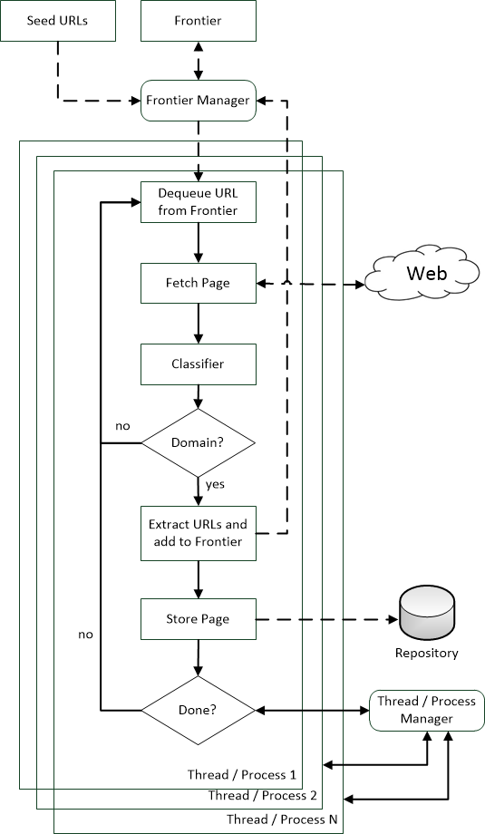 典型的多线程爬行器的过程如下: