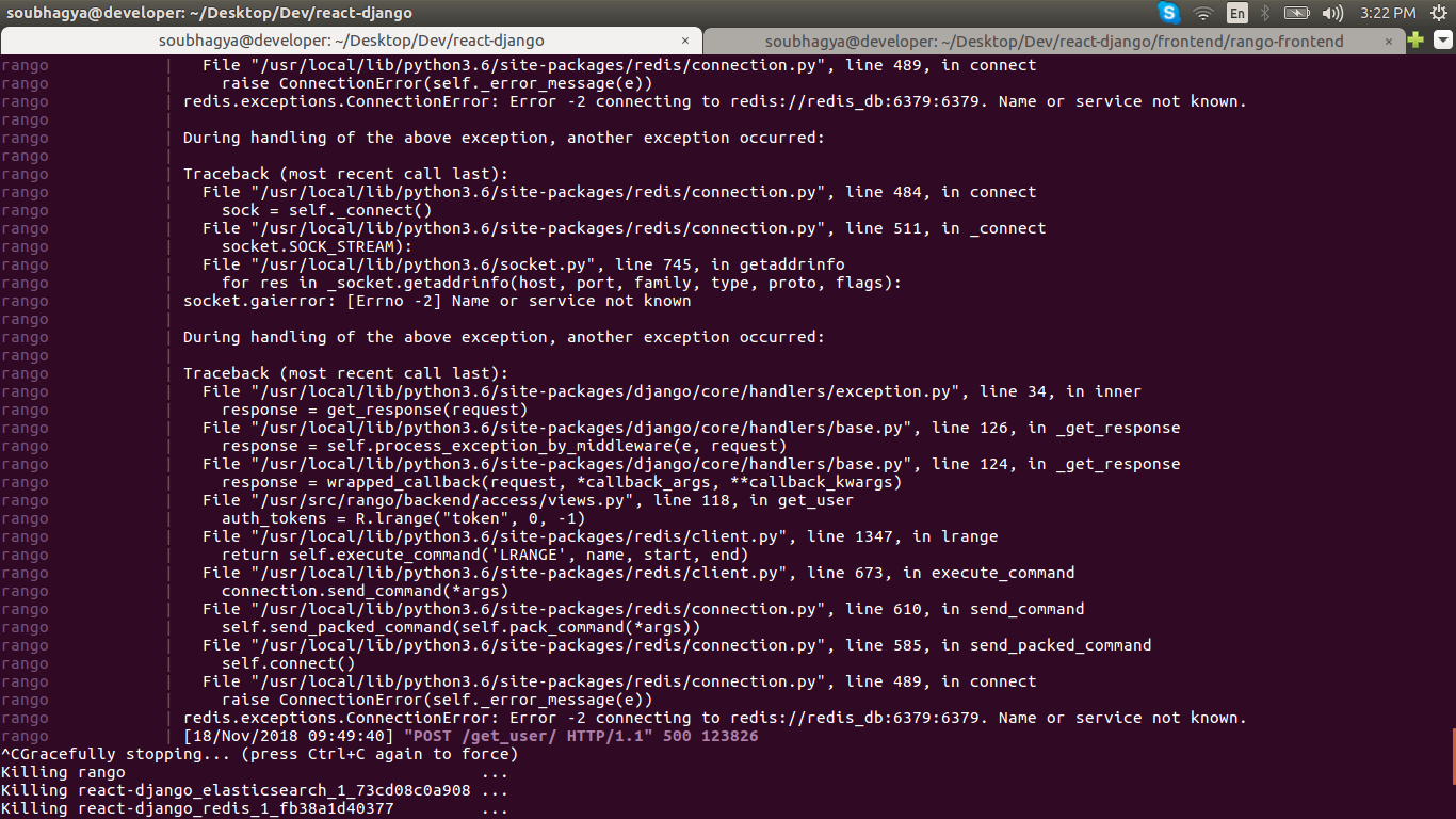 - "6379:6379"这里我是在码头内转接来自django的红葡萄酒。它给了我一些例外,拒绝了连接。请查看我的代码和下面的共享屏幕截图