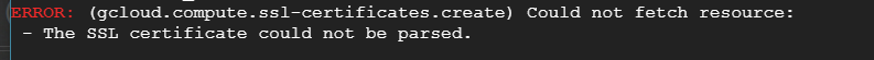 gcloud compute ssl-certificates create cert --certificate /opt/bitnami/etc/