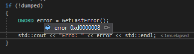 GetLastError返回0xD0000008 (3489660936)