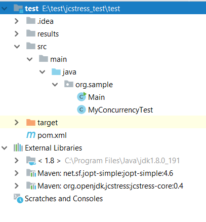 mvn archetype:generate "-DinteractiveMode=false" "-DarchetypeGroupId=org.openjdk.jcstress" "-DarchetypeArtifactId=jcstress-java-test-archetype" "-DarchetypeVersion=0.4" "-DgroupId=org.sample" "-DartifactId=test" "-Dversion=1.0"我做了一个mvn clean install,得到了.\target\jcstress.jar。我添加了MyConcurrencyTest,它在包org.sample中有以下代码