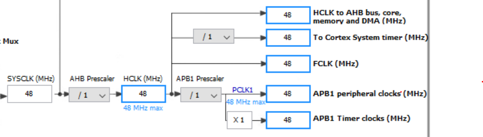 从48 the的限制来看,我假设它是一个STM32F0系列单片机。