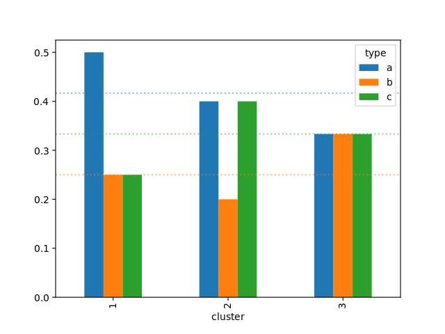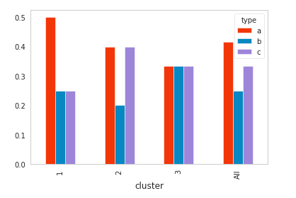 'type':['a','b','c','a','a','b','c','c','a','b','c','a']})我使用交叉表生成一个新的数据和绘图结果: