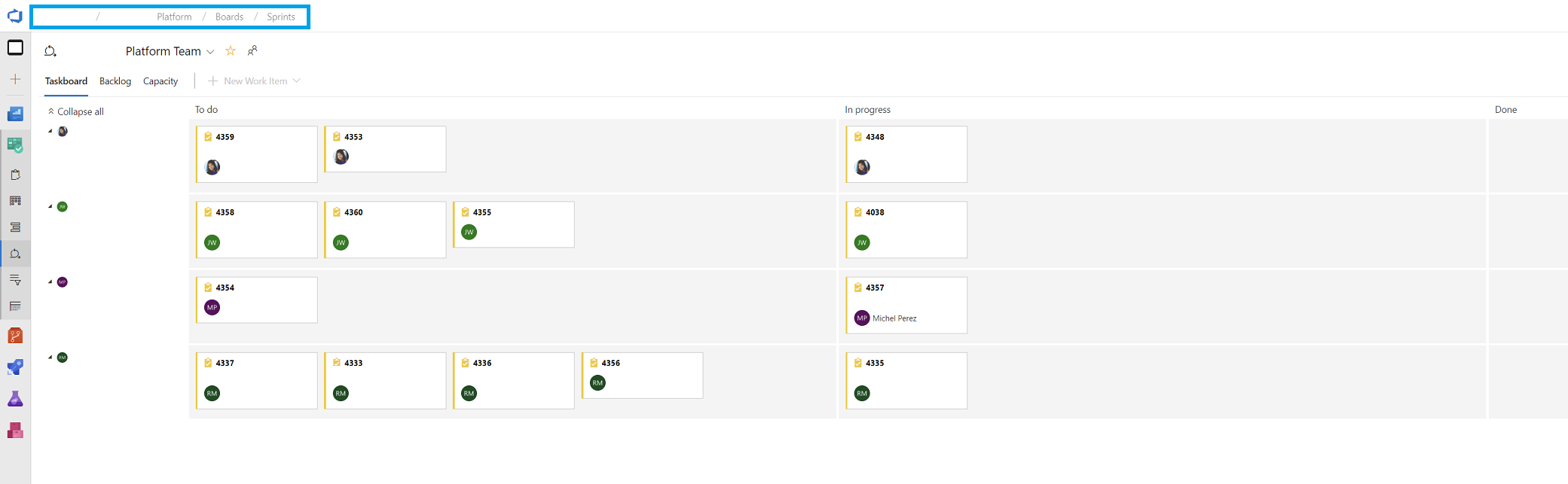 例如,为我们的团队导航到Organization / Project / Boards / Sprints,我们就可以在没有额外屏幕的情况下立即进入任务板(为了保护隐私):