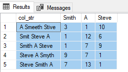 SELECT col_str,PATINDEX('%Smith%',col_str) [Smith],PATINDEX('%A%',col_str) [A],PATINDEX('%Steve%',col_str) [Steve]