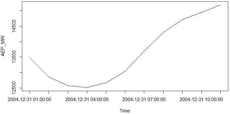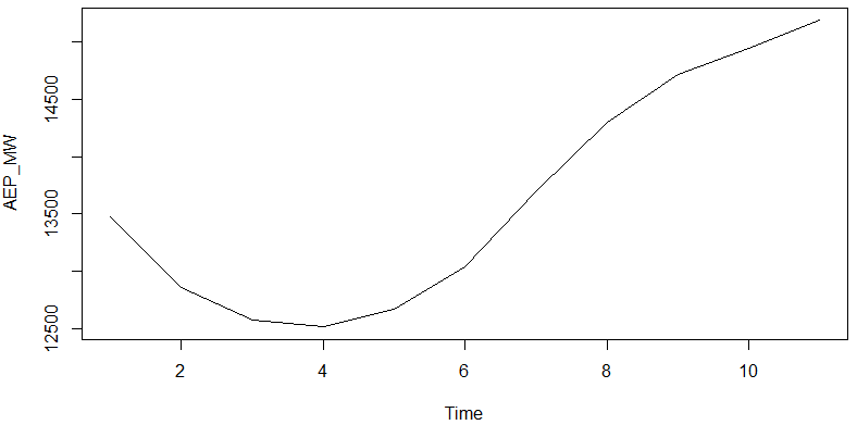 hour_data <- ts(hourly[,c('AEP_MW')])将提供类似于以下内容的输出: