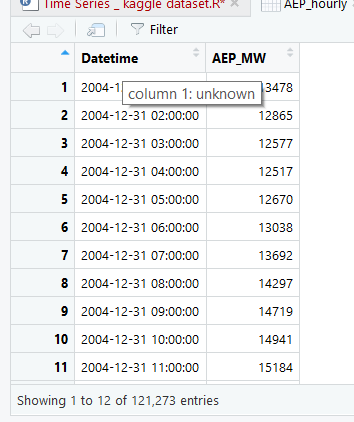 [1] "Datetime" "AEP_MW"