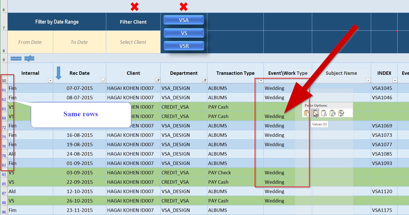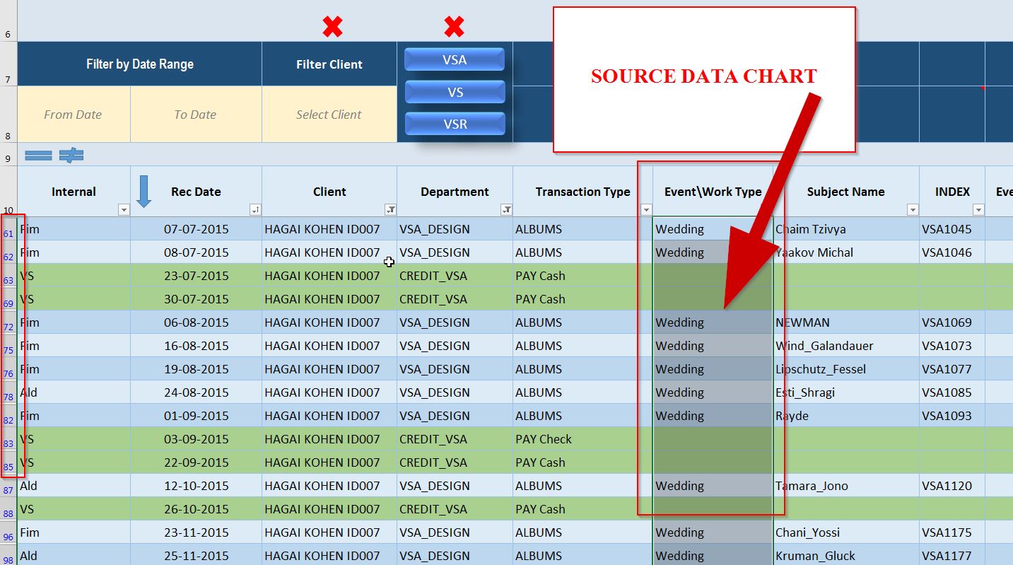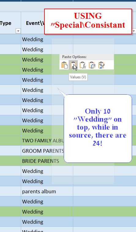 在源(我的备份)中,具有列事件\Work类型中数据的前24个单元格的值是“结婚”,之后是一个值“两个家庭.”