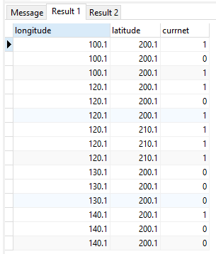 (100.10,200.10,1),(100.10,200.10,0),(100.10,200.10,1),