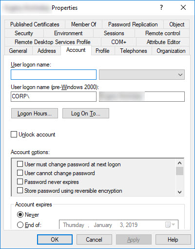 $Users | % {Get-ADUser $_ | Set-ADUser $_ -userPrincipalName $Users}我没有发现任何错误,但似乎什么也没发生。AD上的属性仍然是空的。(见附件)。