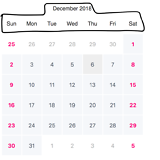 尽管如此,让我解释一下你将如何处理这个问题。你需要把星期日和星期一从日历上删除。您需要自定义days-component of power-calendar。为此,您可以传递自己的组件;假设自定义组件的名称是days-without-monday-sunday。那么您对power-calendar的使用将是: