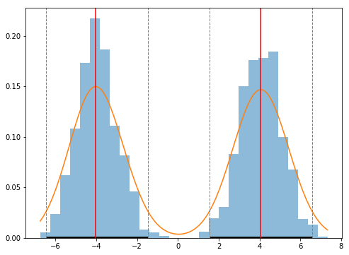 我看到,在Pystan,HDI功能可以用来提供95%可信的间隔围绕后分布。然而,他们说,这将只适用于单峰分布。如果我的模型可能有一个多模分布(最多4个峰值),我有没有办法在Pystan找到HDI?谢谢!