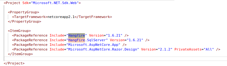 看来,我可以使用.NET MVC核心项目,仅使用HangFire 1.6.21软件包。请参阅下面在我的项目中使用的包: