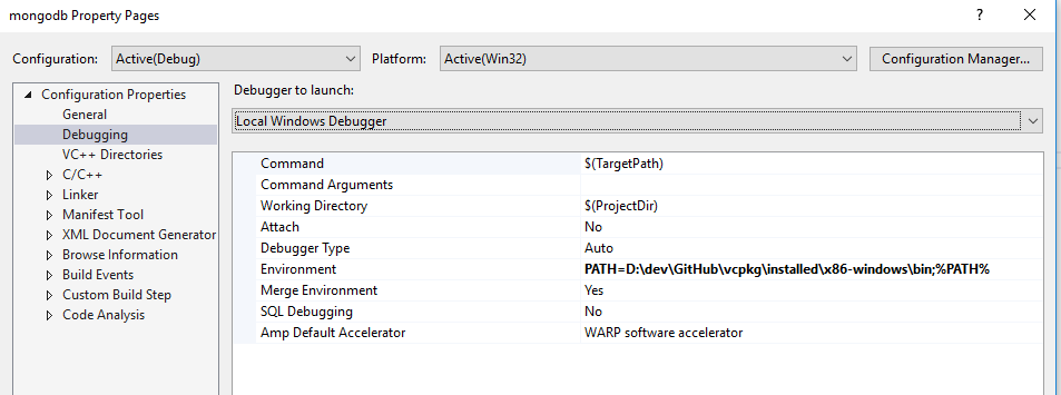 ========== Build: 1 succeeded, 0 failed, 0 up-to-date, 0 skipped ==========要运行您需要添加的.exe:\dev\GitHub\vcpkg\installed\x86-windows\bin到路径。这是为了让.exe能够找到mongocxx.dll
