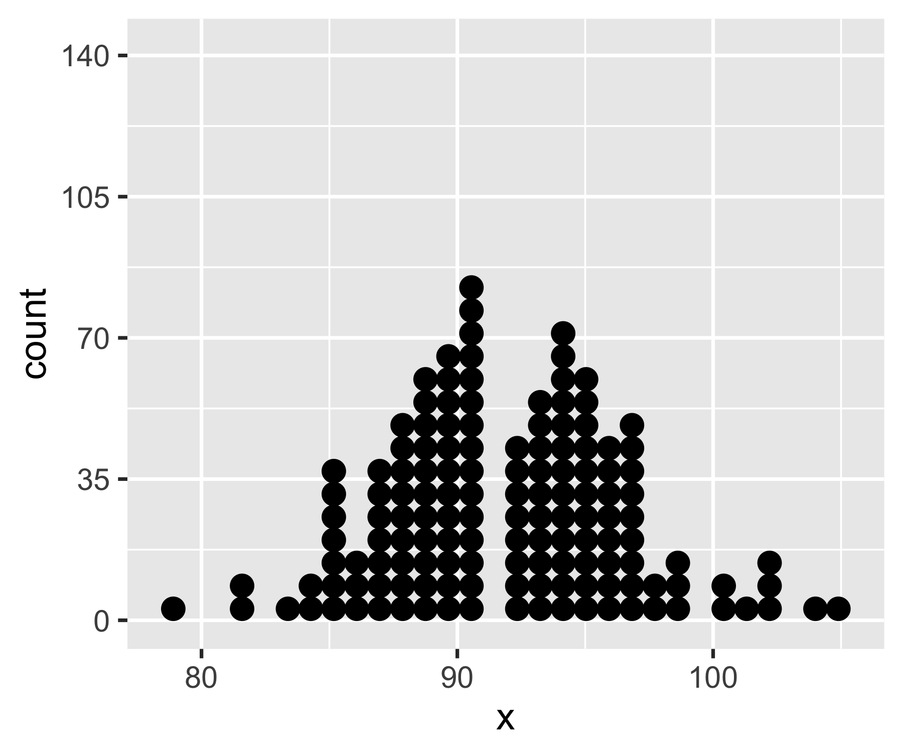 geom_dotplot(method = 'histodot', binwidth = 1) +