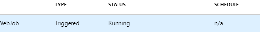 然后,我做了一些测试,向it.Firstly展示我用TimerTrigger创建了一个webjob并进行了部署,它将显示与您的n/a SCHEDULE一样的结果。然后我删除not作业进程并上传一个settings.job,然后刷新页面(而不是门户中的刷新),然后调度更改为CRON表达式。如果您删除该文件,它将更改回。
