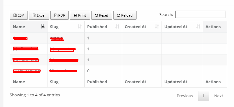 $brands = Brands::select(array('brands.id','brands.name','brands.slug','brands.description','brands.logo','brands.published','brands.created_at','brands.updated_at'));