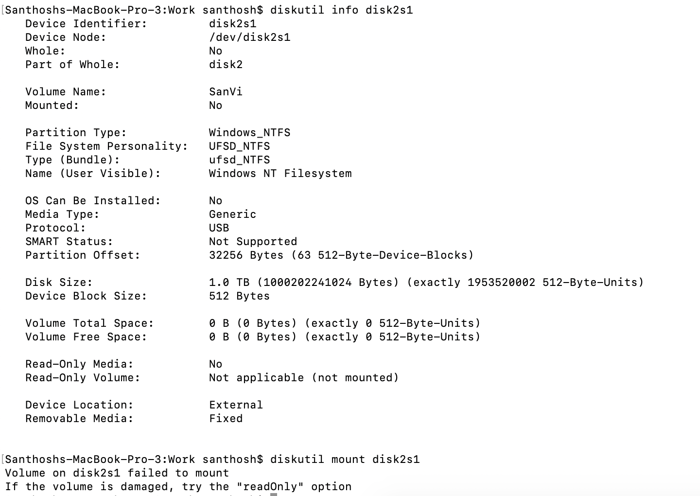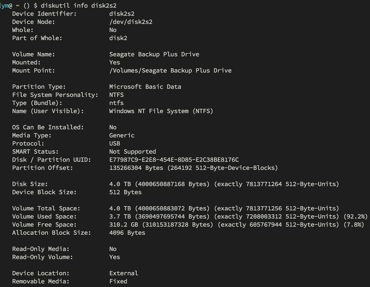 我自己在Mac上安装了NTFS磁盘(只读),但是我的File System Personality是"NTFS",而不是像您一样的"UFSD_NTFS“: