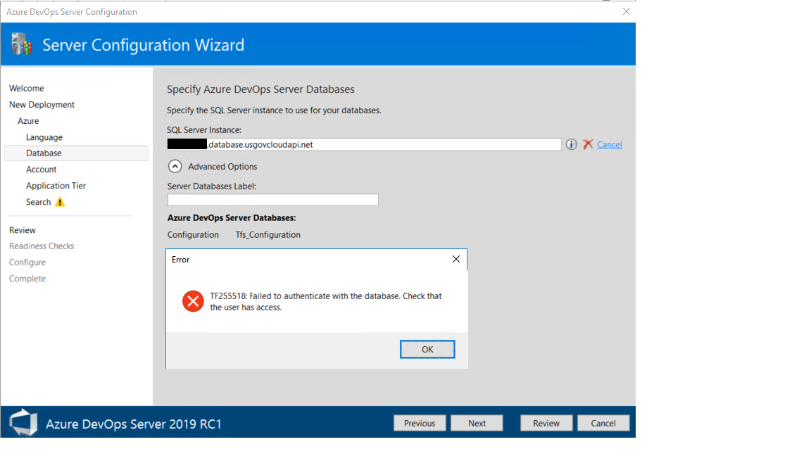 我一直在努力让我的DevOpsServer 2019-RC1安装来查看我的Azure
