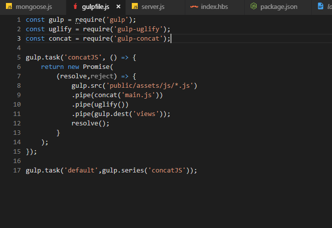 在gulp-concat之后,将在我的项目文件夹中添加新的连接js文件,然后启动服务器,但文件不会加载在浏览器中。服务器响应404。