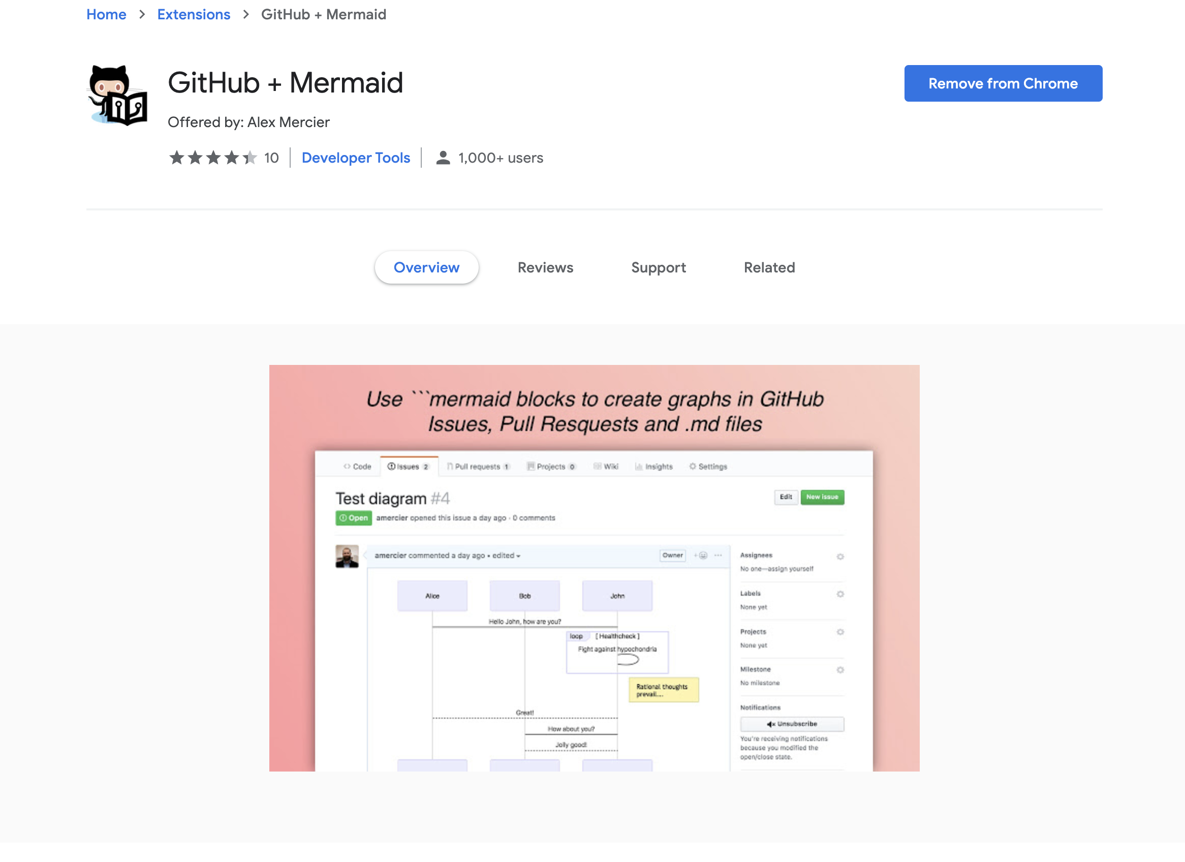 我正在使用Chrome:https://chrome.google.com/webstore/detail/github-%20-mermaid/goiiopgdnkogdbjmncgedmgpoajilohe?hl=en