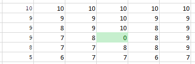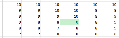 [ 9, 9, 9, 10, 8, 9],