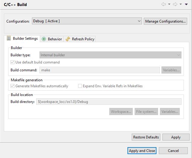 当我进入我的项目的属性,然后进入C/C++ Build时,我注意到Generate Makefiles Automatically复选框是灰色的,我不能禁用它。这是我第一次使用Eclipse,所以我习惯于只创建自己的--由于某种原因,我无法找到禁用它的方法。