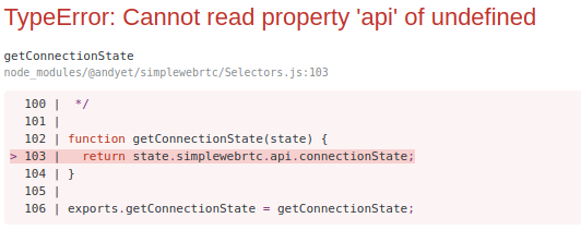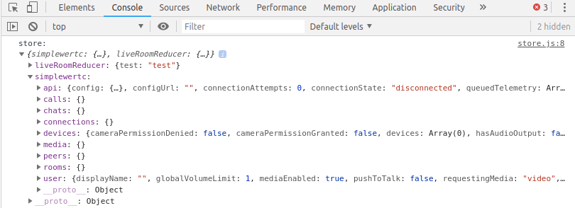 };我正在控制台中记录存储状态,并在其上显示simplewebrtc: